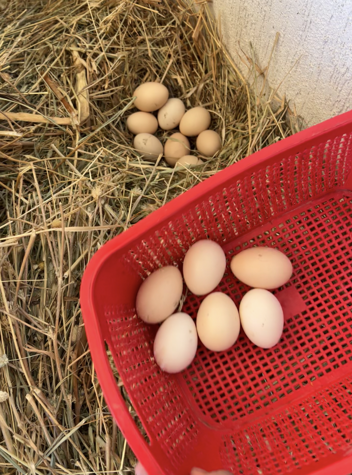 Feeding chickens, understanding natural egg production, and discussing animal welfare in small rural farms.