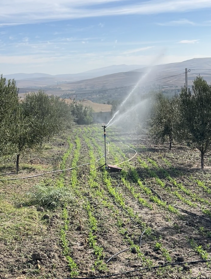 Exploration of olive trees, vegetable garden, irrigation methods, soil types, local seeds, and ecological farming traditions.